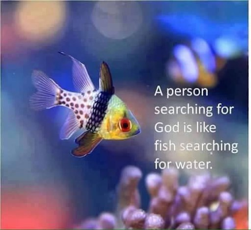 Being outside of time and space the self is both everywhere and nowhere–depending on one’s point of reference. One thing is definite: the self cannot be separated from to any degree and is always present in the fullest measure. This being so, we need not seek the self, but only realize it. We are always seeing, touching, and living in the self, yet we do not recognize it, just as fish have no perception of water because of its intimate and integral connection with them. The self is even more immediate to us than is water to the fish.